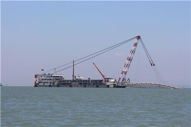 北溪水閘改建工程北港交通橋預制梁鋪設完成